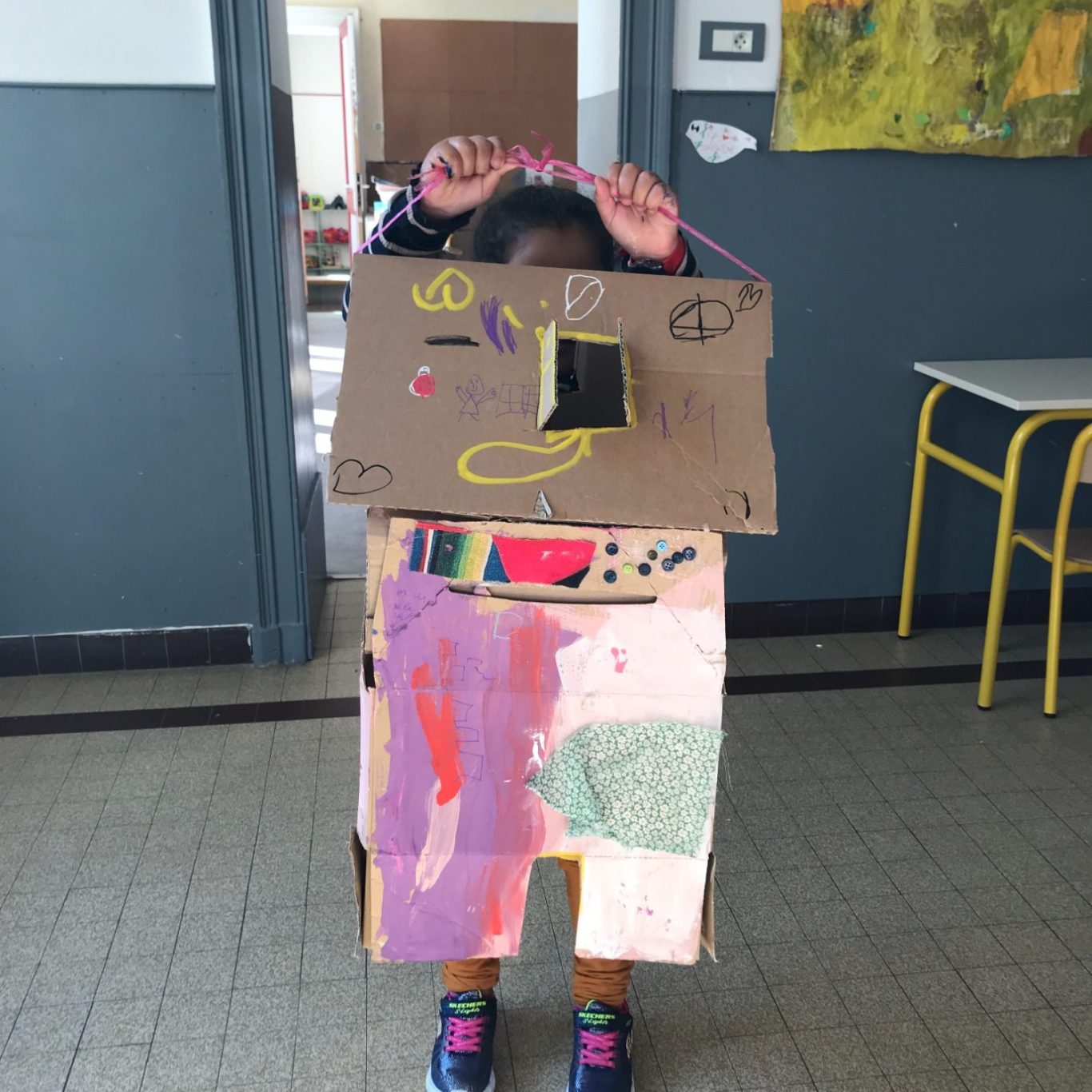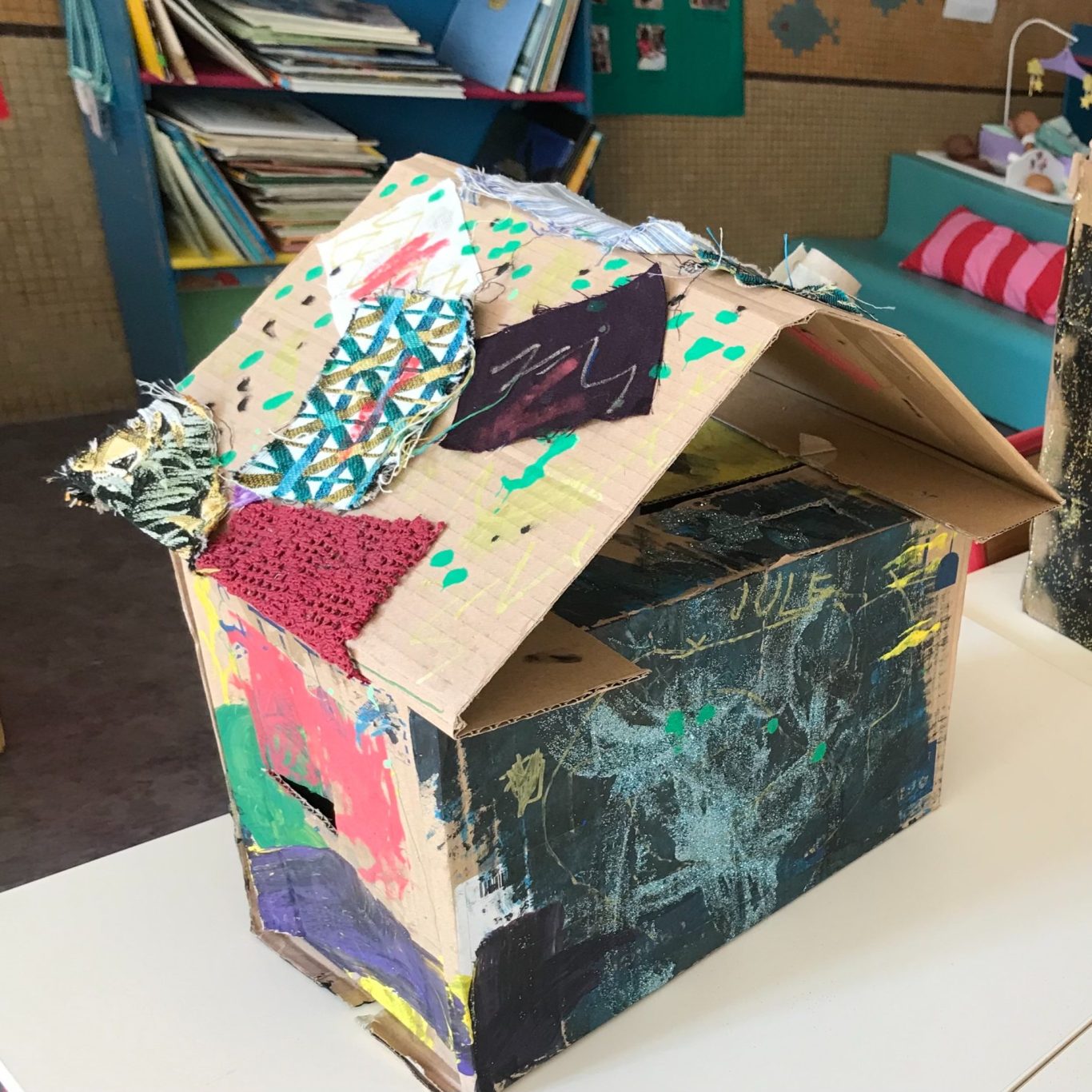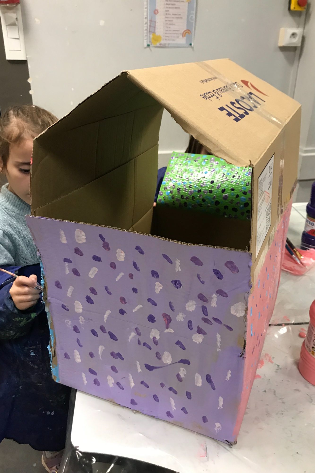 Reflexion autour de sa maison miniature engagée avec les enfants de l’école. Interieur ou exterieur ?